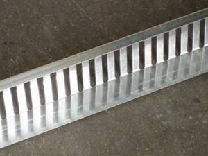 Les gardes grèves sont des bandes métalliques, composé d’acier galvanisé, en L, ajourées pour permettre l’évacuation de l’eau. Ils existent en hauteur 7, 10, 12 ou 14 cm et font 2m de longueur.